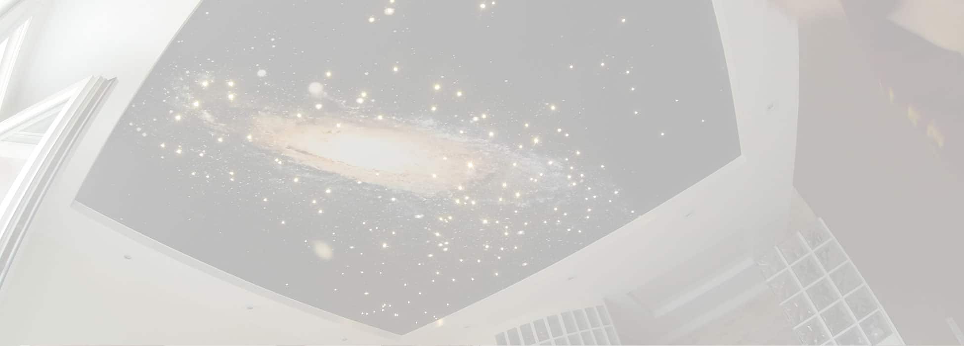 Pose  d’une toile tendue imprimée avec un motif de voie lactée en haute définition. La réalité est renforcée par l’ajout de fibres optiques scintillantes sur certaines étoiles. L’expression dormir à la belle étoile n’a jamais aussi bien porté son nom.